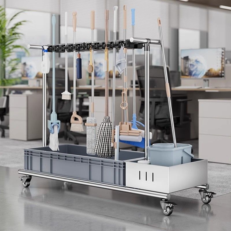 ステンレス鋼モップラック床置き型モバイルモップボウルモッププールほうきラック家庭用クリーニングプール収納ラック