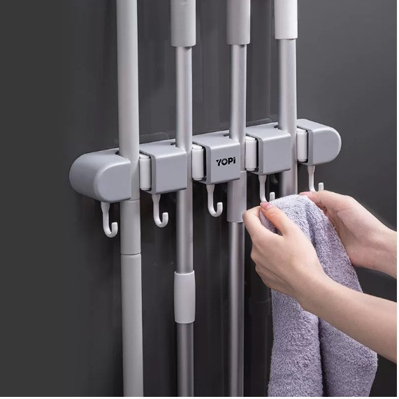 漫画の壁掛け収納ラック多機能モップクリップパンチフリーデザインモップバックル固定クリップ
