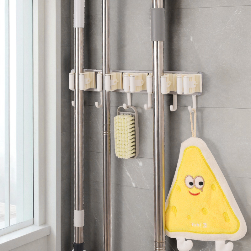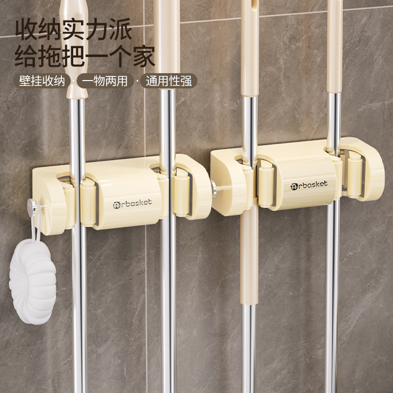 壁掛けモップクリップラックパンチフリーフックバルコニー浴室トイレバックル固定ほうき収納ラック