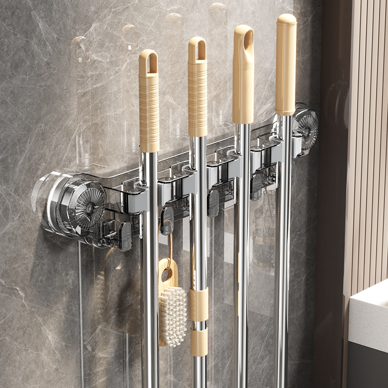 吸盤モップ壁掛けクリップパンチフリー壁掛けほうきモップ家庭用バスルーム強力な固定ラックフック