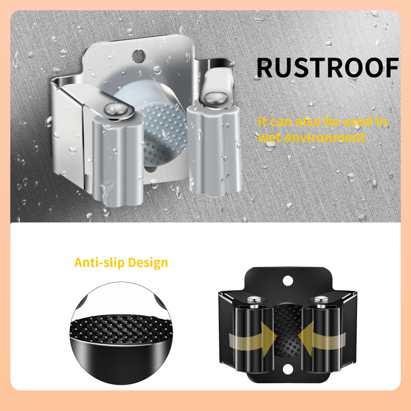 ✅クロスボーダーモップホルダーステンレス穴なしモップラックモップモップ収納ツールホルダー壁掛け式トイレ掛け