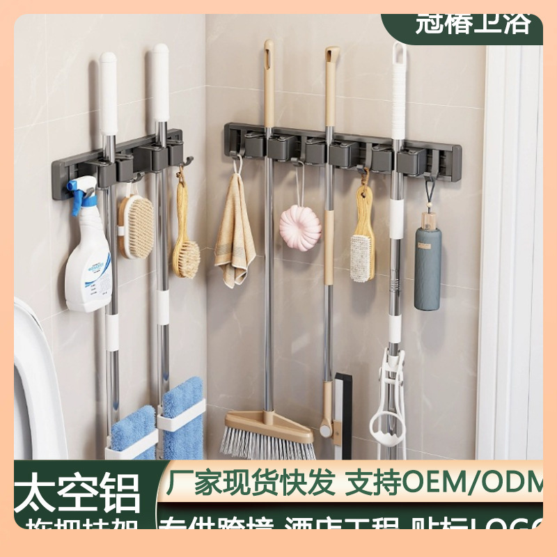 国境を越えたトイレのアルミ合金モップラックの清潔な専用モップクリップは滑り止めがしっかりしていて、間隔を調節できる