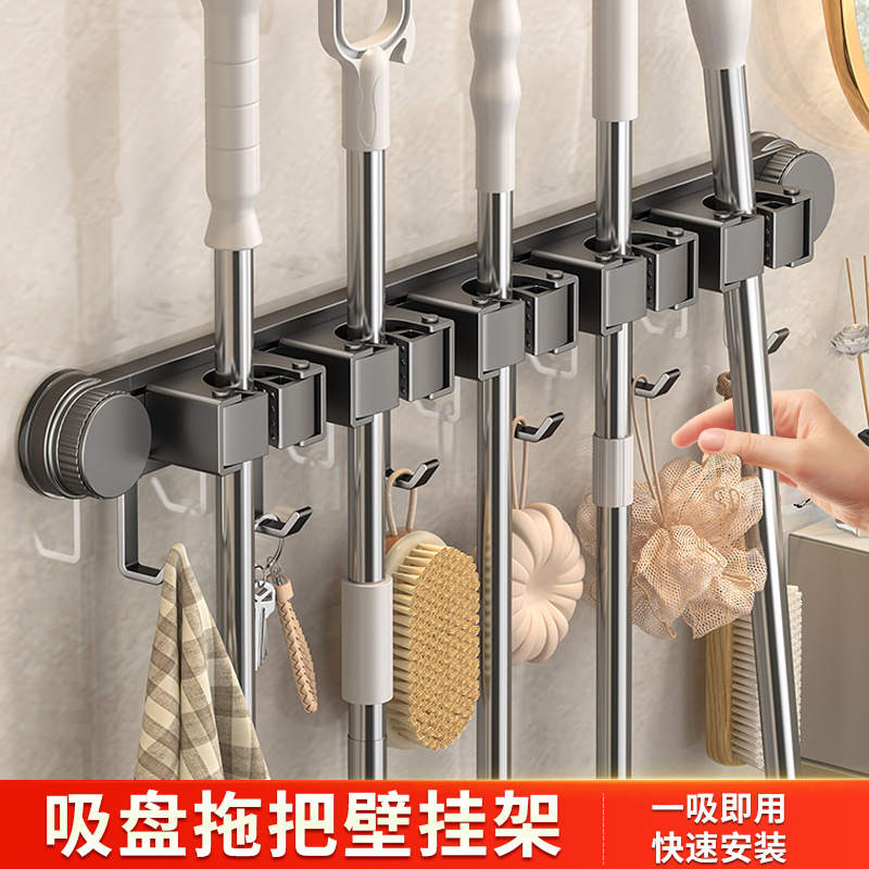トイレ吸盤モップ壁掛けクリップ穴なしフックほうき固定棚ベランダ浴室ハンガー収納神器