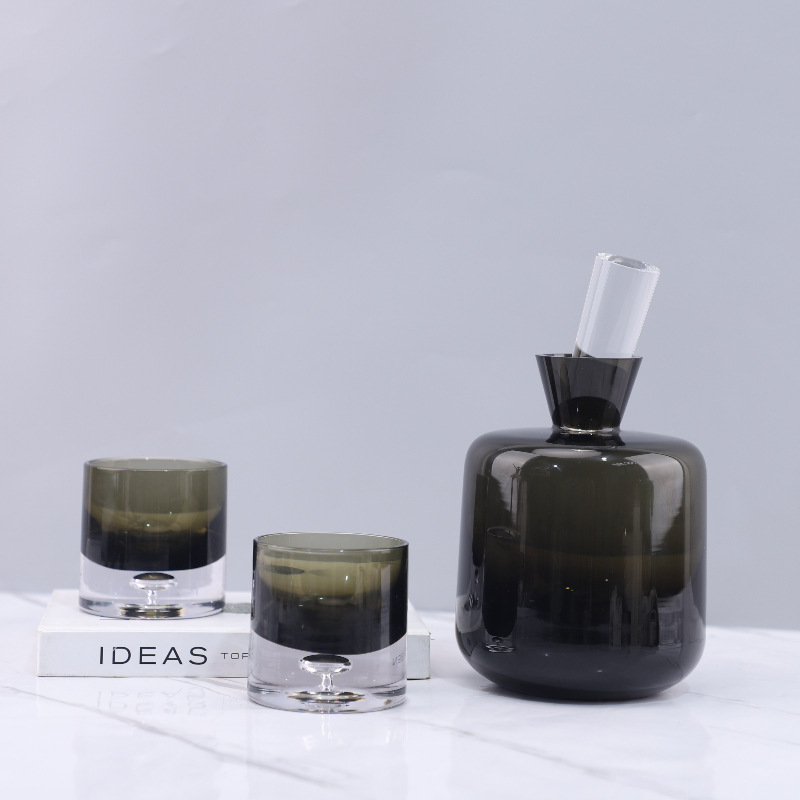 現代のシンプルなハイエンドの厚いガラスのワインのデキャンタの杯の組み合わせのセットのホテルのレストランの家庭の装飾品