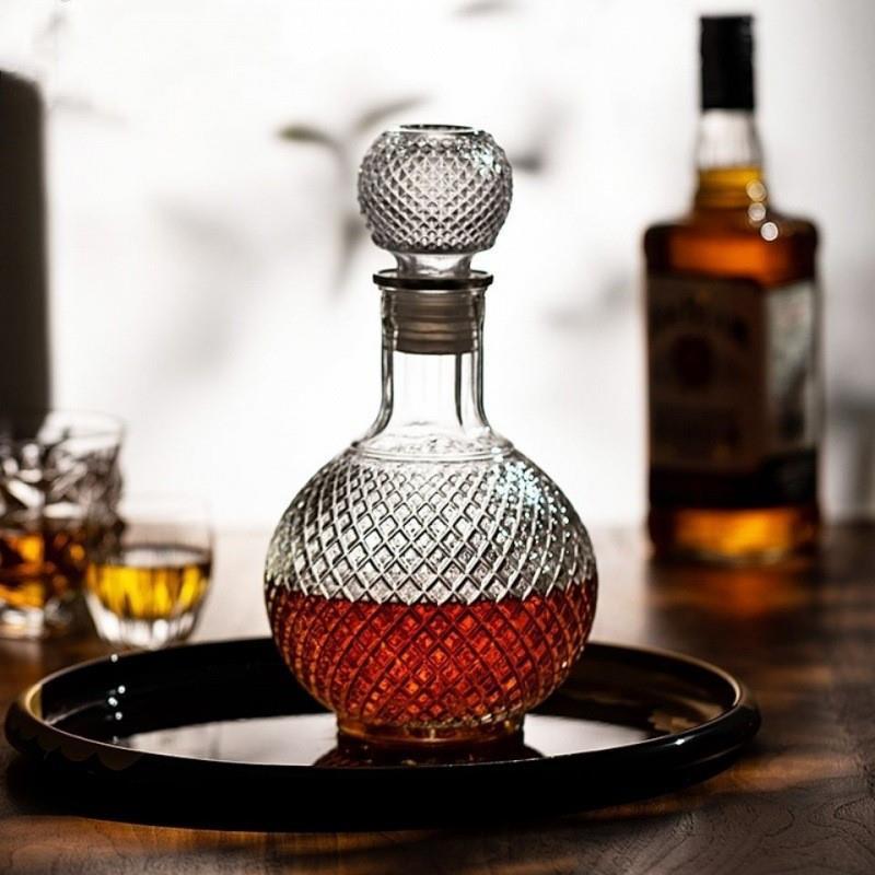 斜口デキャンタガラス分酒器鉛フリー分酒壺大容量洋酒壺ガラス酒壺スケール白酒壺