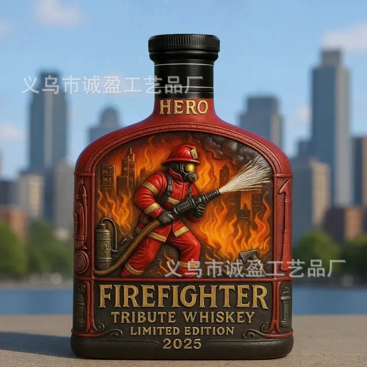 2025年国境を越えた人気の消防士トリビュートワインボトル装飾品ガラス素材のウイスキーボトル