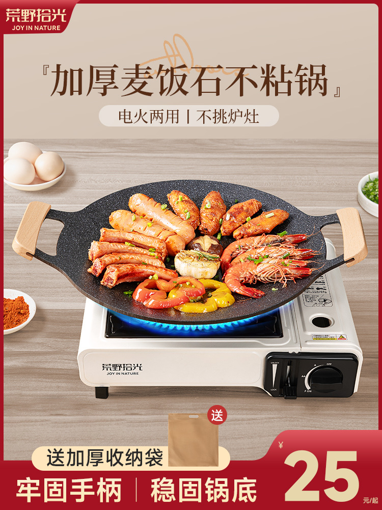 アウトドアキャンプバーベキュープレートカセットストーブ調理器フライパンポータブルピクニック鉄板フライパン韓国バーベキュープレート家庭用