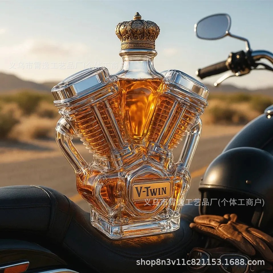 2025 ホットスタイルクロスボーダー V ツインエンジンワインボトル装飾品工芸品ガラス素材のウイスキーボトル