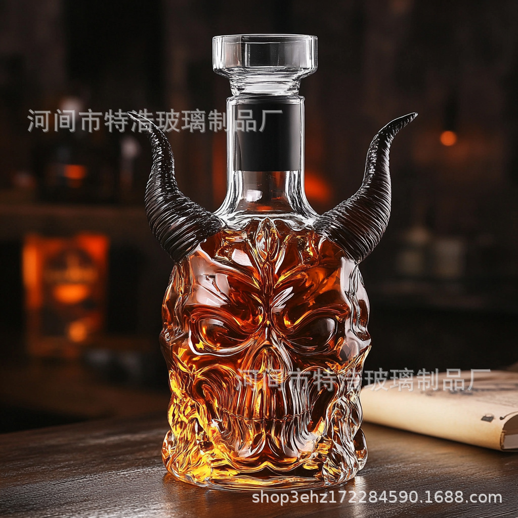 新しいスカルウィスキーボトル高ホウケイ酸ガラスワインボトルクラフトワインボトル動物の形のワインボトル