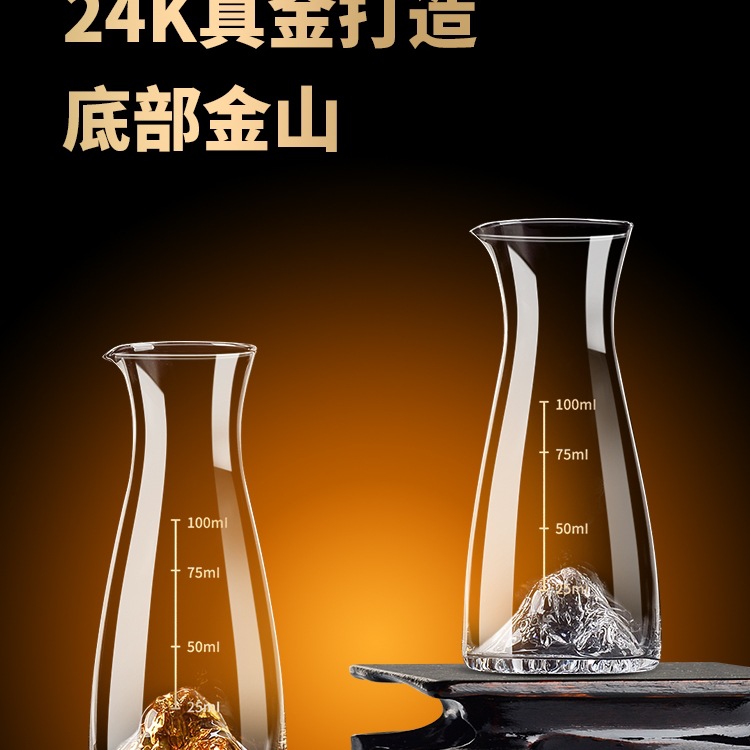 ワインディスペンサー、白ワイン、家庭用金箔100mlクリスタル金山ワインカップ、中国式デキャンタ、ワインディスペンサー、ワイン計量器