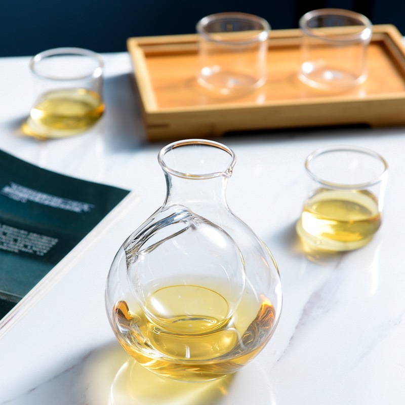 ガラス白酒分酒器セット家庭用小酒壺目盛り酒壺洋酒デキャンタワイン金箔分酒壺