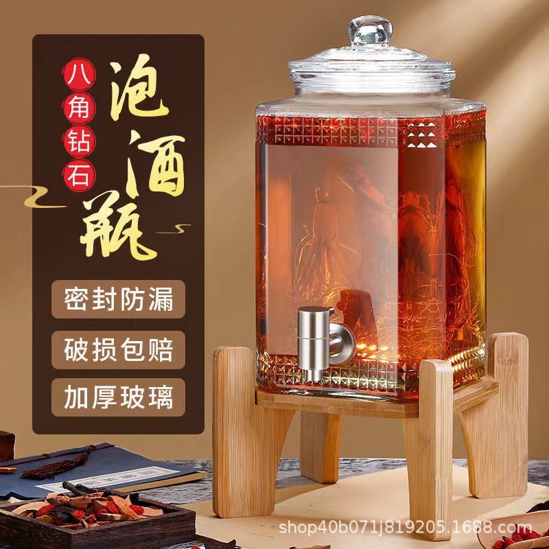 卸売り泡酒ガラス瓶家庭用密封薬酒缶酒缶酒壇10斤入酒桶蛇口付き大容量