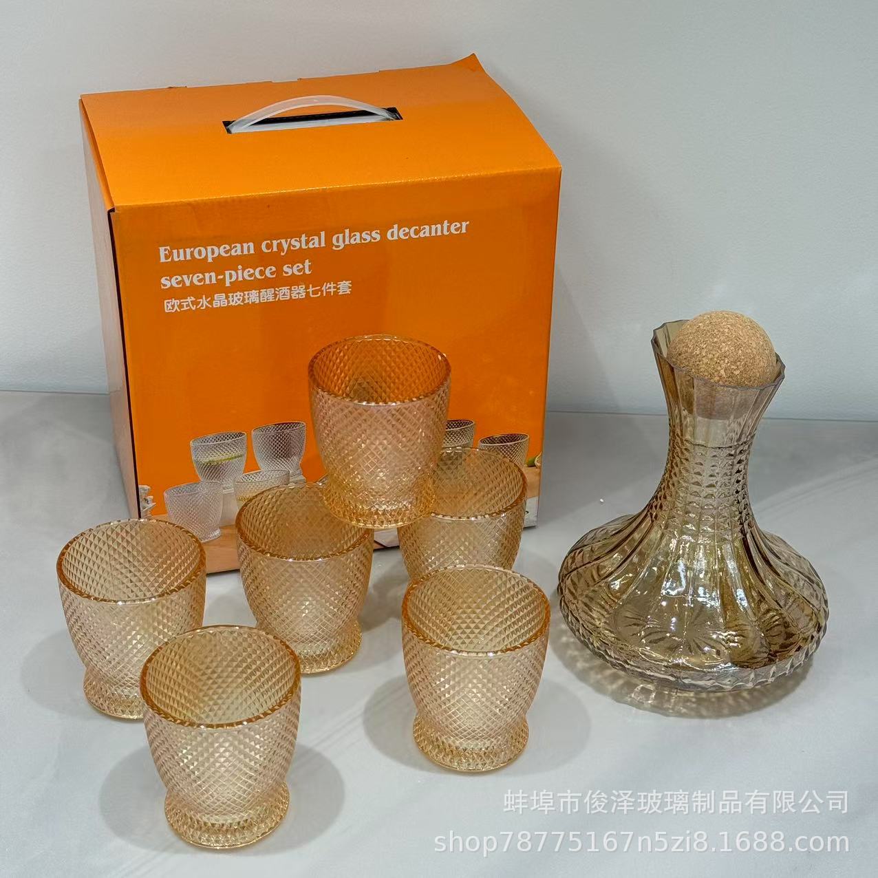 新商品のヨーロッパ式の軽い豪華な家庭用のひし形のガラスのワインのデキャンタのセットのハンマーの紋様の活動の贈り物はすぐに贈り物をします。