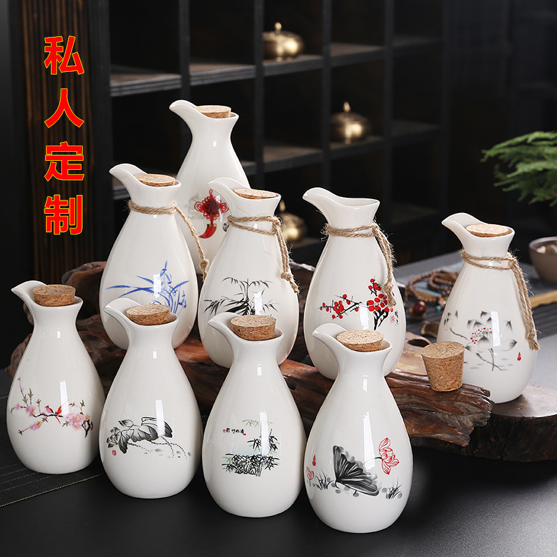大瓶は酒を分けて古風な陶磁器の酒の壺の白い磁器の家庭用の酔いを覚まします器の白い杯の坊の古い中国式の彫刻を備えます。