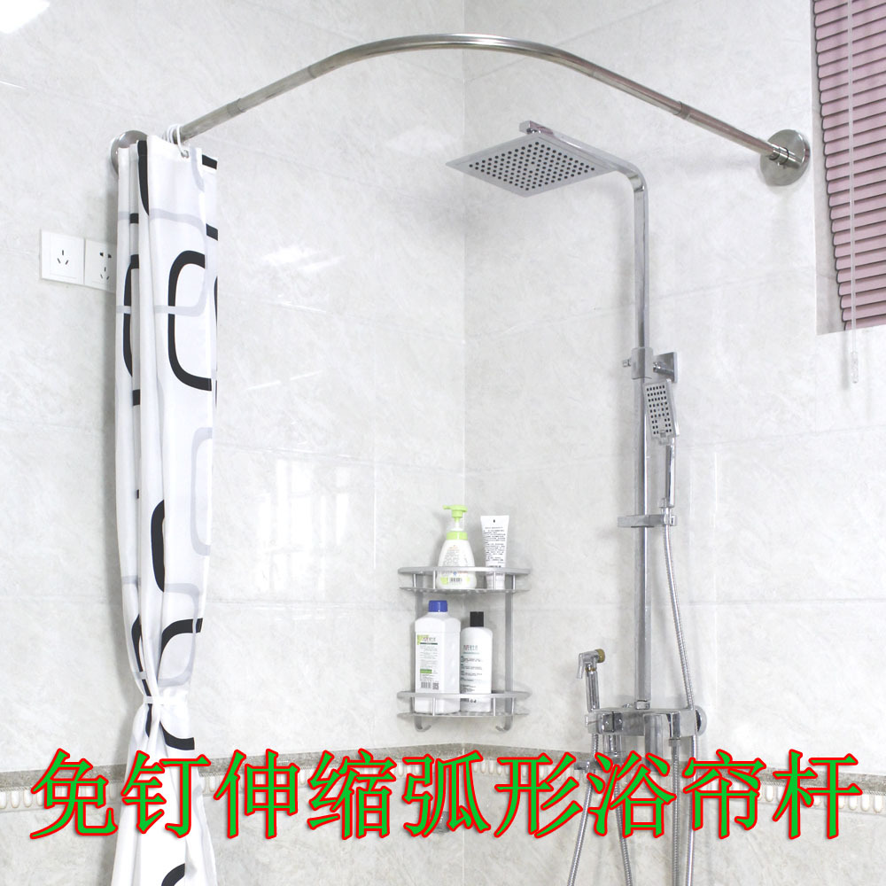 バスカーテン棒l形304ステンレス伸縮アーチ形穴なし伸縮バスカーテン棒セットトイレ角バスバー