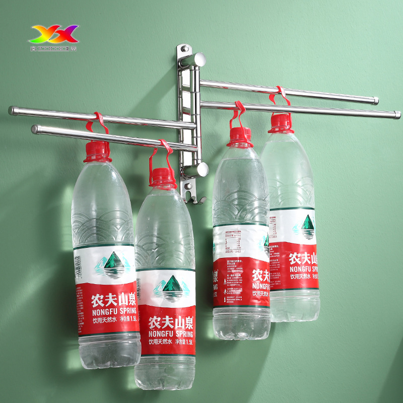 304ステンレス鋼可動バーバスルームトイレ穴なし回転タオルバー多機能折りたたみ収納ラック