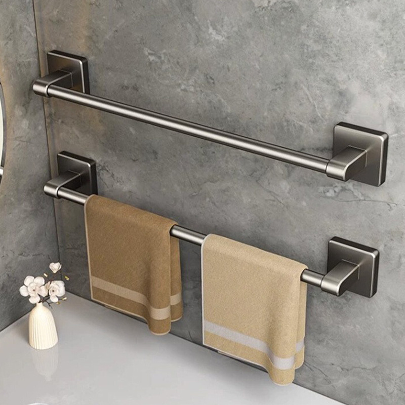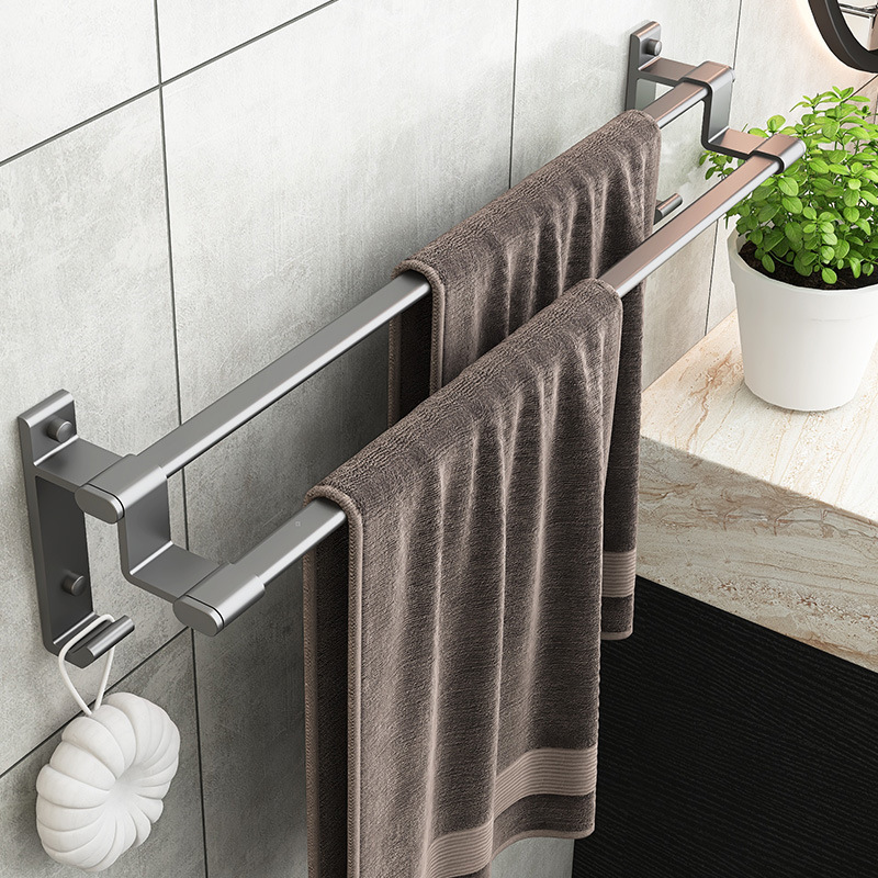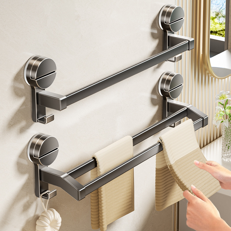 吸盤タオル掛け銃灰双棒穴なしトイレ掛けタオル棒宇宙アルミ浴室バスタオル棚