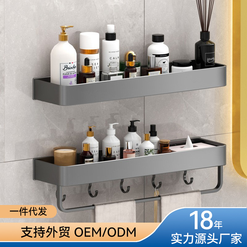 纳牧浴室置物架轻奢带杆毛巾架家用卫生间收纳架厂家批发晾衣杆