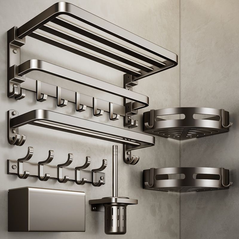 ガンメタルグレーのタオルラック、スペースアルミニウム製トイレバスタオルラック、バスルーム用二つ折り浴室収納ラック、穴あけ不要の壁掛け式