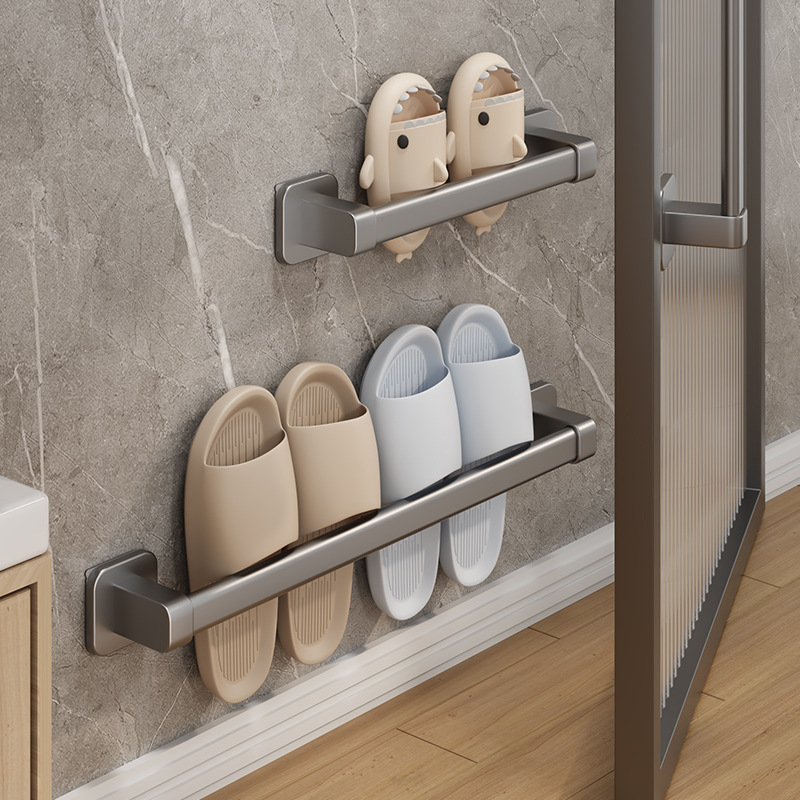 浴室モップラック穴なし壁掛け式トイレの壁のドアの後ろに水を落とす靴ラック収納棚