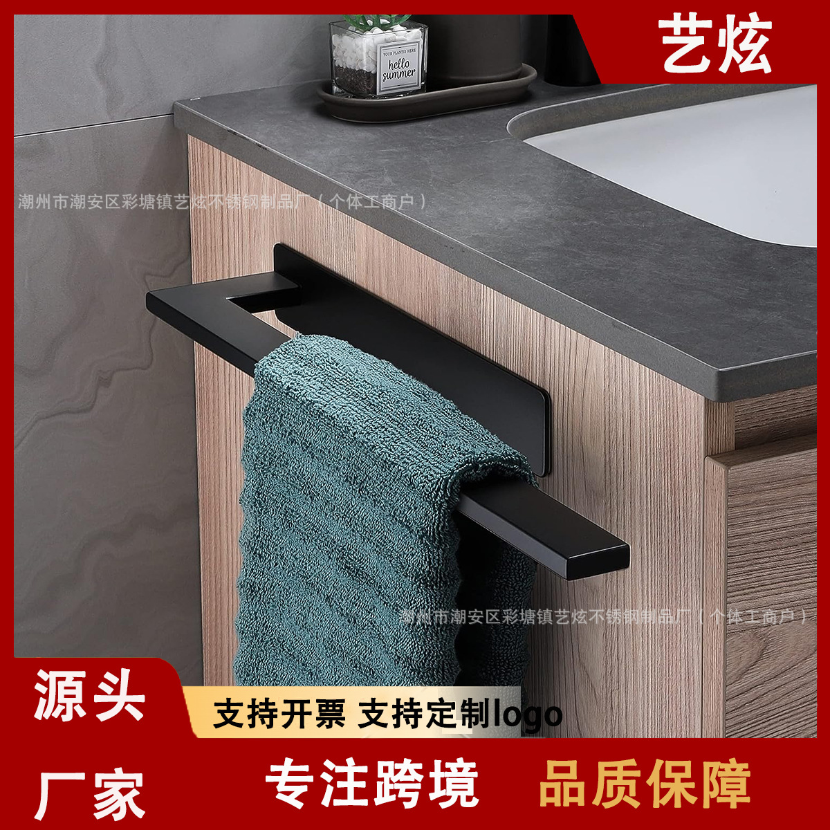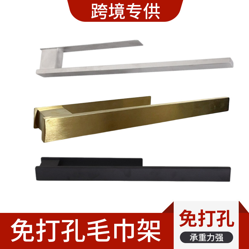 タオルバークロスボーダー専用ステンレス製タオルラックシングルバー穴なし棚黒い家庭用タオルバー