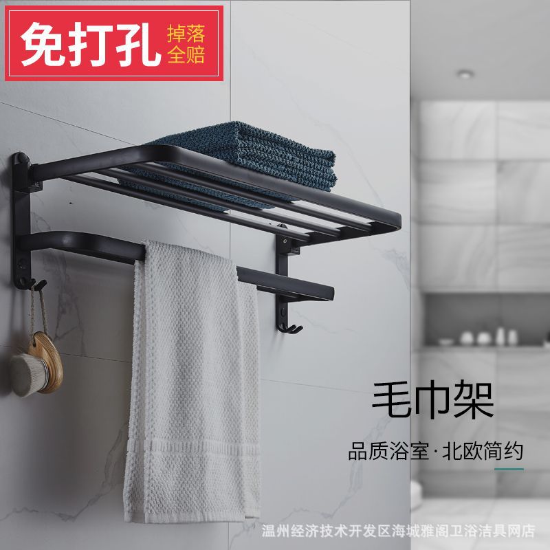 雅格妃宇宙アルミニウム二重折り畳み活動タオル掛けトイレタオル掛け浴室棚穴なし