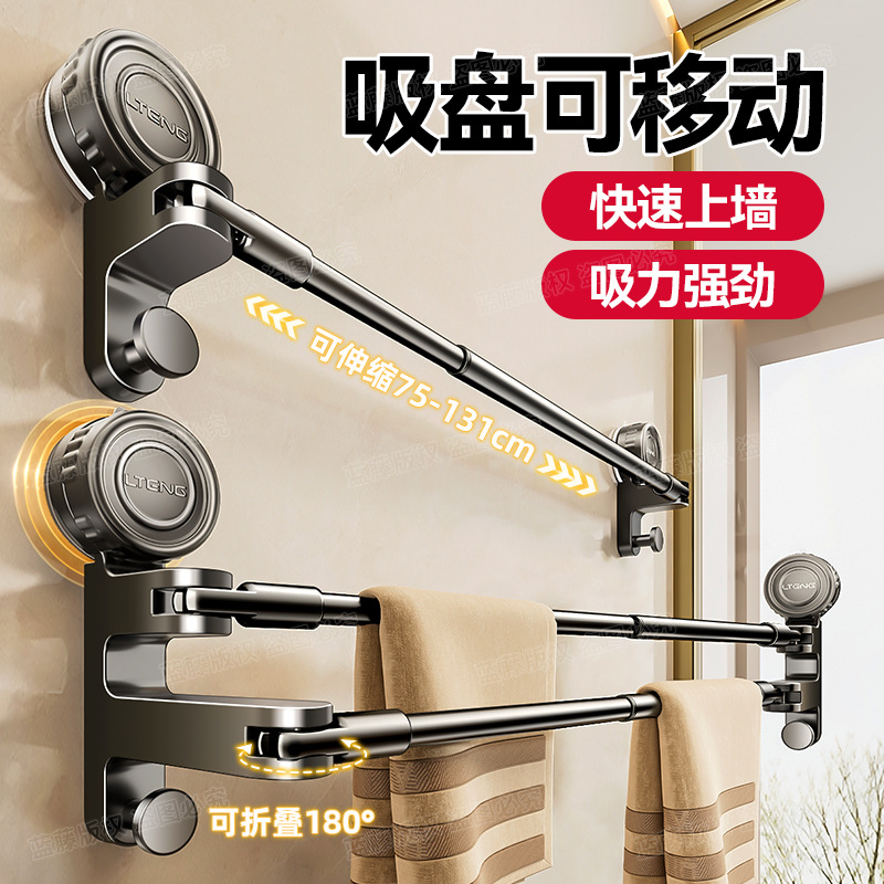回転タオルラックバスルームパンチフリー可動両ロッドタオル吊り下げロッド多機能折りたたみ収納ラック乾燥ラック