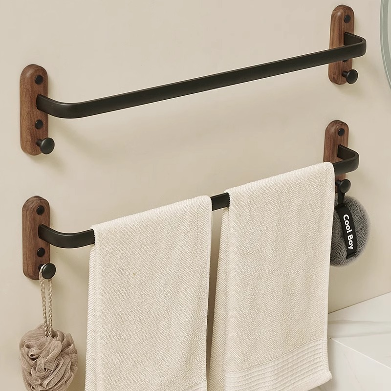 北欧ウォールナットタオルバー パンチフリー 家庭用バスルーム トイレ タオル シングルバー ハンドタオル フェイスタオルホルダー