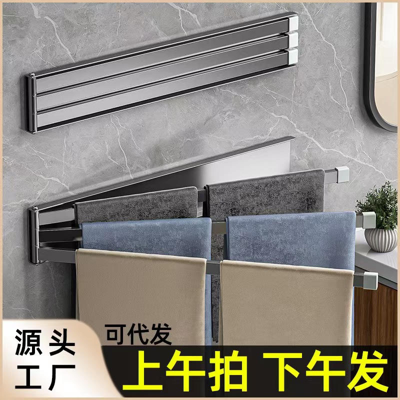 クロスボーダー双棒タオル棒ステンレス無穴トイレ強力自粘壁式フック置物棒卸売り