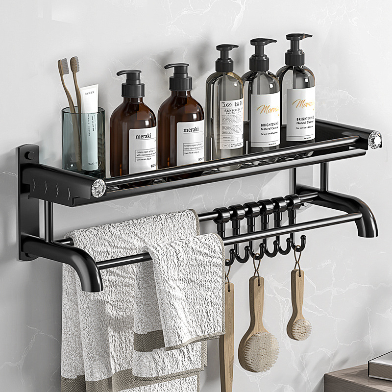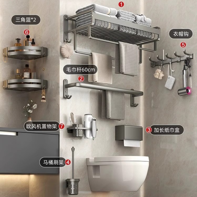 Amazonタオルラックセットバスルーム壁挂け収纳タオルバーティッシュラックフックパンチレスシャワータオルラックセット