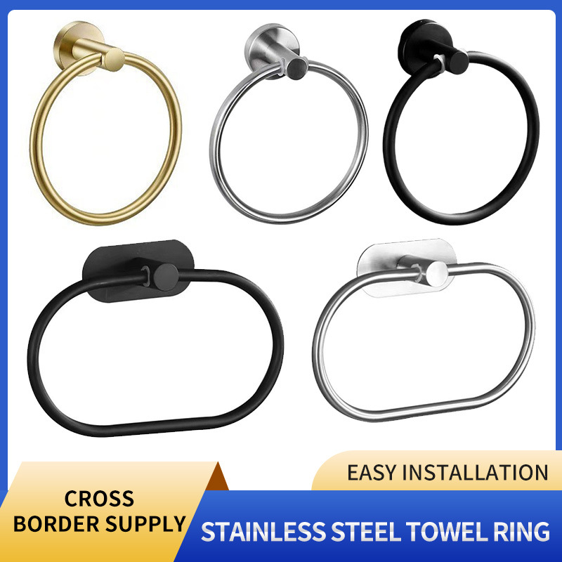 304ステンレス円形タオルリングトイレ浴室は楕円形のバスタオル棚ステンレス円リングフックを穴にする必要があります。