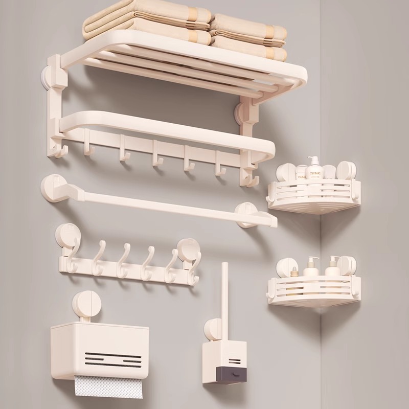 タオル掛け穴なしトイレ壁掛け式浴室タオル掛け棒棚トイレ収納掛けクリーム