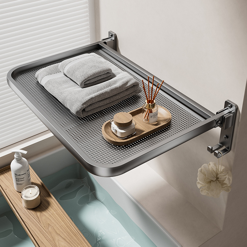 銃の灰色の浴室の見えない折りたたみのバスタオルの棚は穴を開けないでください。