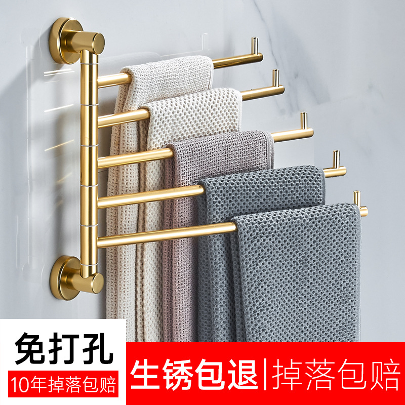 99CH卸売穴なしスペースアルミ浴室タオルラック回転金色タオルバー壁掛け中実ダブルバーマルチバー