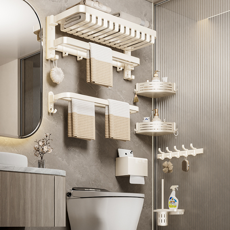 クリーム風タオル掛け穴なし浴室棚トイレ掛け一体壁掛け式折りたたみバスタオル棚