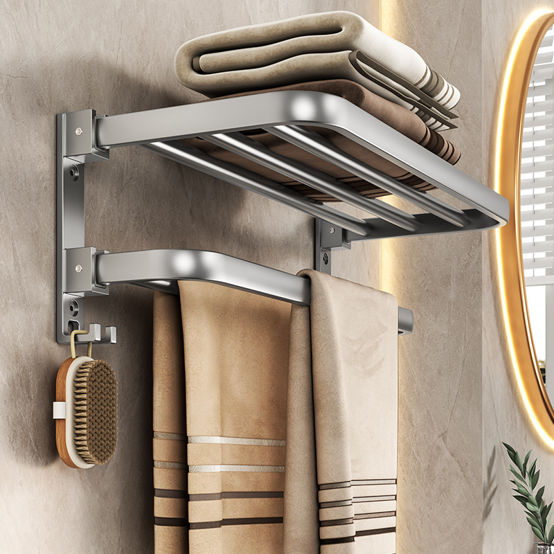 白い穴なし浴室タオルラック壁掛けトイレ宇宙アルミ折り畳みタオルバークリエイティブシングルハンガー