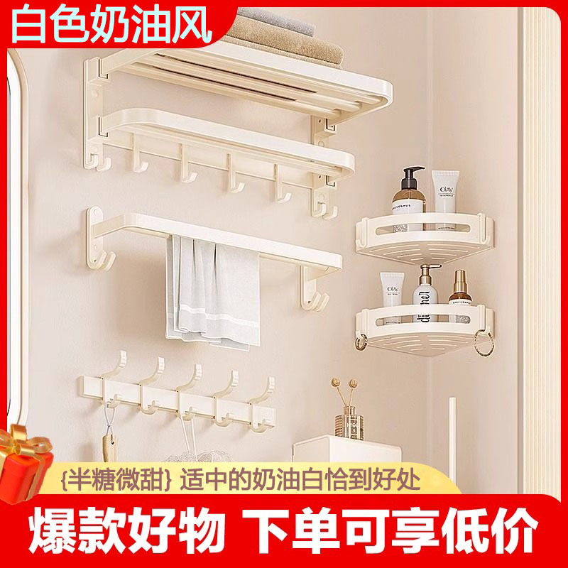 クリーム風浴室壁掛け式タオル掛けバスタオル掛け一体穴なしトイレトイレ収納棚