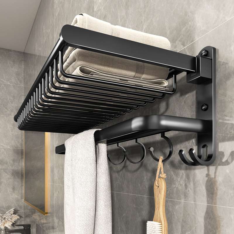 メーカー回転タオルラック黒い宇宙アルミニウムトイレトイレ折りたたみ浴室タオルバー穴なし