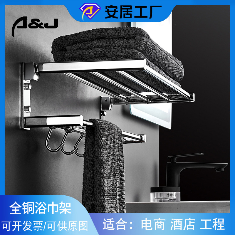 全銅タオル掛け折り畳みバスタオル掛けトイレ棚軽い贅沢風浴室風呂場二重収納棚