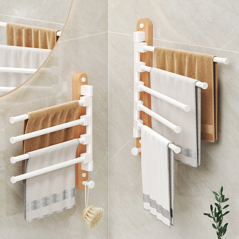 原木風回転タオルラックトイレ穴なしマルチロッドバスタオル収納ハンガー壁掛け浴室コーナーハンガー