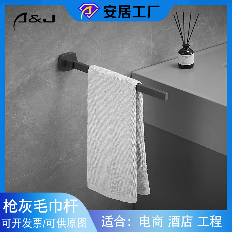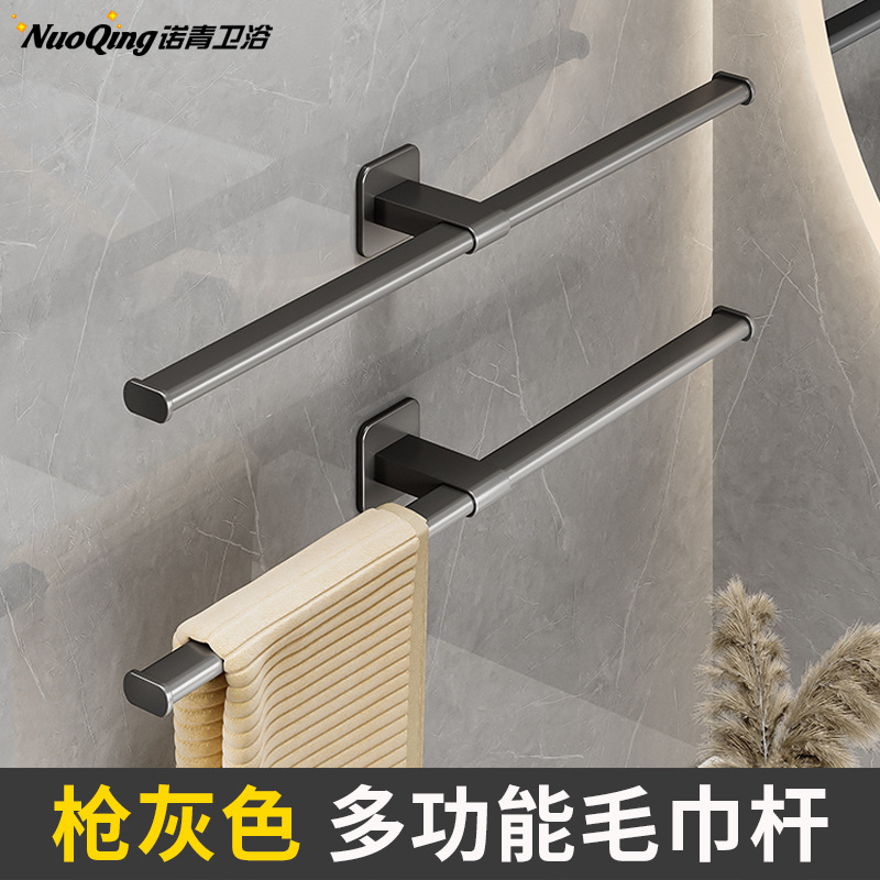 爾泡銃灰タオルラック304ステンレスタオルバー単棒トイレ双棒バスタオルラック穴なし浴室