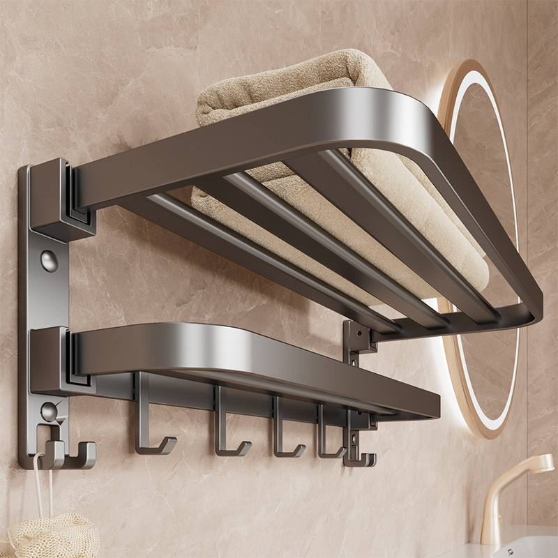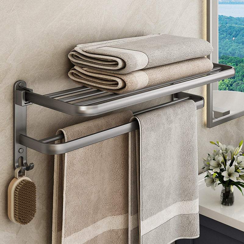 カスタム全銅銃灰タオルラック壁掛け棚折り畳み可能浴室置物収納棚トイレタオルラック