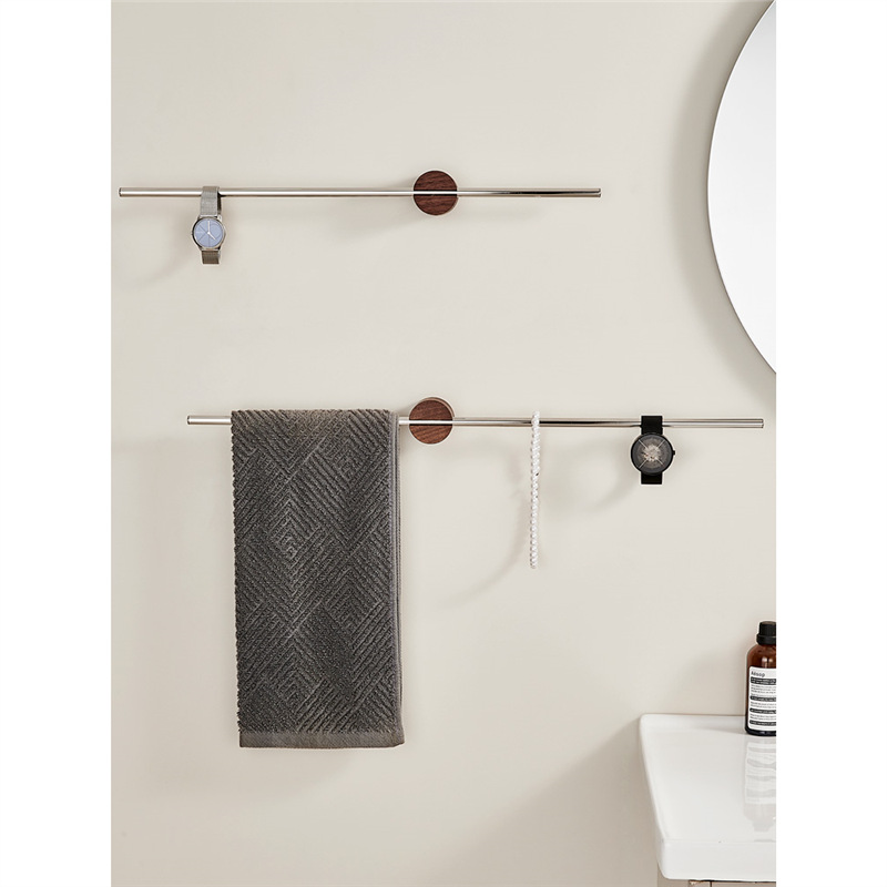 胡桃の木の極めて簡単なステンレスのタオルの棚の単竿のハイエンドのトイレの浴室の洗面台は穴を開けないで壁を掛けます。