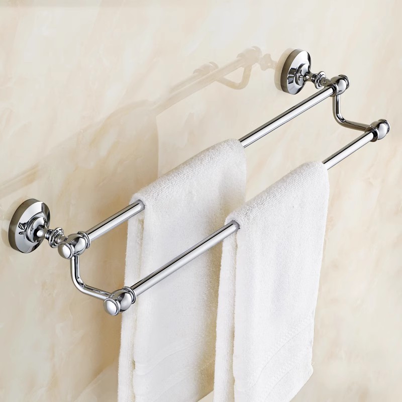 電気メッキ吸盤タオルバー壁掛けパンチフリーバスルームタオルラックバスルームダブルロッドタオルラック収納ラック