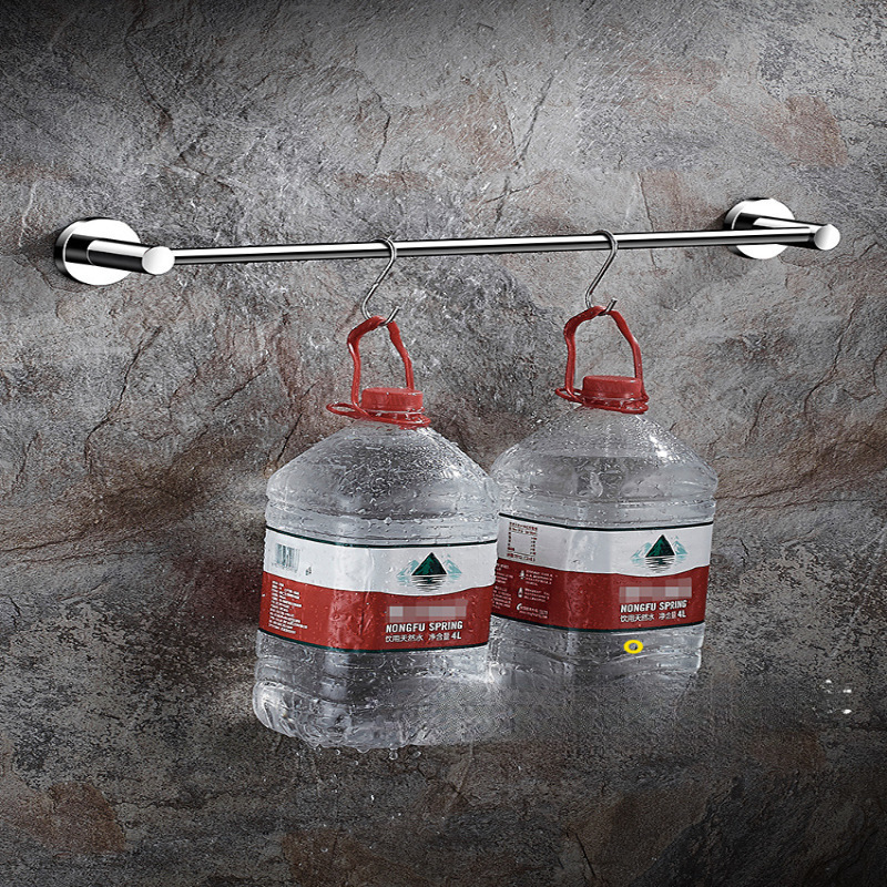 伸縮吸盤タオルバー ステンレス製シングルロッド バスルームタオルラック バスルーム吊り下げロッド シングルロッド壁掛け棚