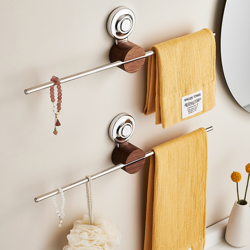 吸盤ステンレスの胡桃の木の化粧室のタオルの棚は穴を開けないで軽くて豪華な壁掛け式の単竿の極めて簡単な浴室の掛け棒です。