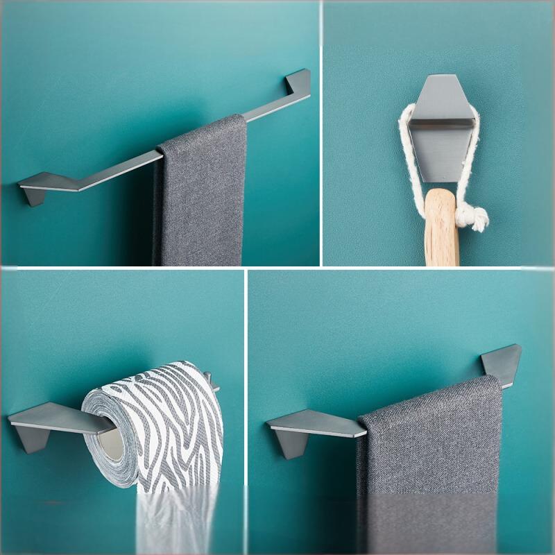 ガングレー全銅つや消しバスルームタオルラックバスルームパンチフリータオルバーホテルアートシングルバーセット