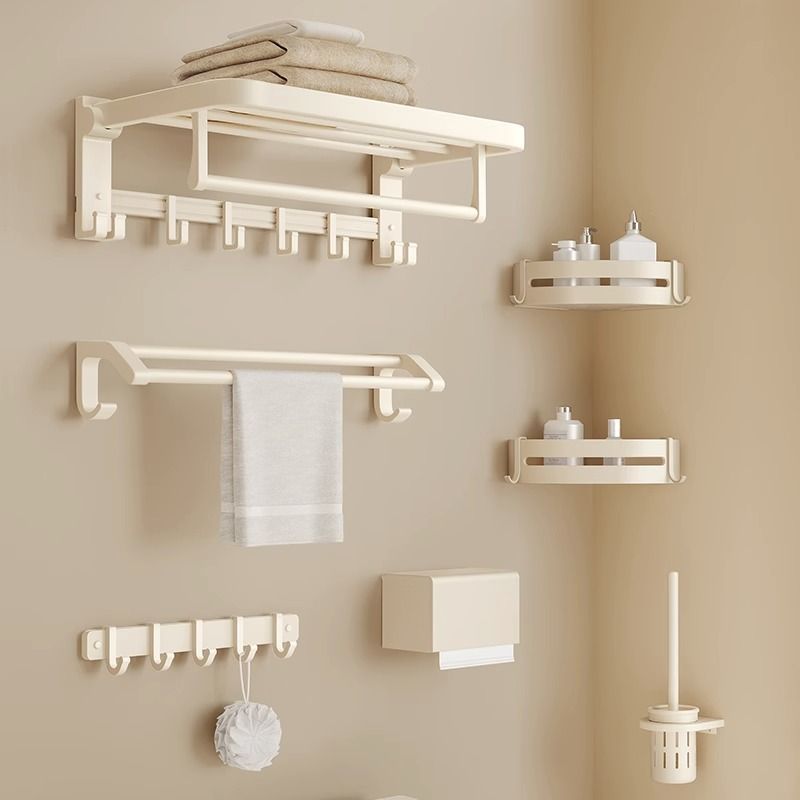 クリーム系パンチフリータオルラック 浴室バスタオル収納ラック 浴室アクセサリー5点セット 浴室トイレ