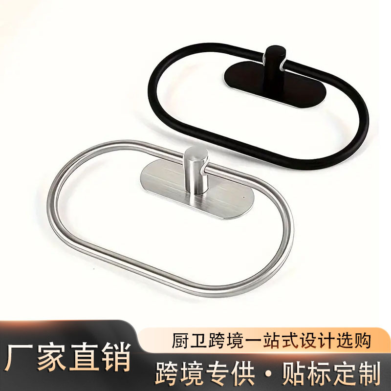 跨境美式黑色浴室卫生间免打孔不锈钢毛巾环 椭圆形毛巾挂架挂环
