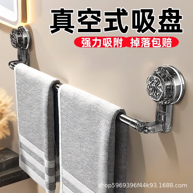 吸盤タオルラック浴室パンチフリー折りたたみタオルバーバスルームトイレタオルシングルロッド収納ラック